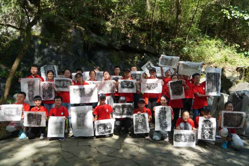 “窮幽深而不盡,坐石上以忘歸”是北宋文學(xué)家王安石用以形容山谷流泉美景的經(jīng)典詩句。在這里,營員們不僅體驗(yàn)到青山綠水木橋溪流構(gòu)成的靜謐之美,還感受到了石刻上的文化與藝術(shù):在長達(dá)1500余米的山谷兩岸的石壁上,自唐代至今留存的名家文人石刻將近400方,琳瑯滿目,美不勝收。走在歷代書法藝術(shù)長廊之中,仿佛再現(xiàn)了古代文人墨客徜徉于此,物我兩忘,題辭勒石的場景……營員們還合作體驗(yàn)了拓片的制作,在鍛煉動手能力的同時(shí)親近了中國傳統(tǒng)文化,感受了中國書法魅力。
