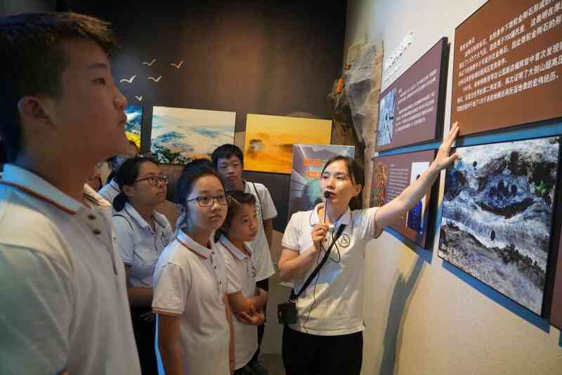 營員們在這里不僅觀賞了天柱山地質(zhì)景觀,體驗(yàn)了天柱山地區(qū)豐富的歷史文化內(nèi)涵,還開啟“地心”游歷模式,感受18億年以來,天柱山“石破天驚”“上天入地”的地質(zhì)演化歷程。豐富的巖石礦物標(biāo)本、動植物標(biāo)本和古生物化石標(biāo)本,讓營員們流連忘返,意猶未盡。