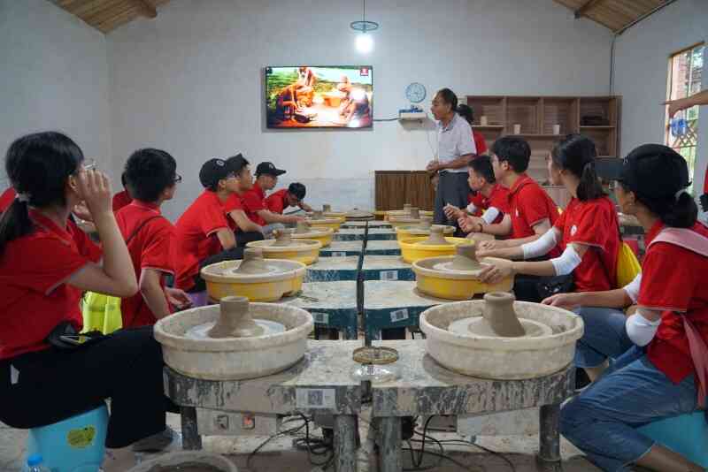 潛山市痘姆鄉(xiāng)素有“千年陶瓷之鄉(xiāng)”的美稱,陶器手工技藝距今已有6000多年的歷史,堪稱制陶史上的活化石。走進(jìn)痘姆古陶,首先映入眼簾的是建于清代的龍窯,每個(gè)入火口都堆積了許多柴火,近處可感受到火的炙熱溫度。走進(jìn)屋內(nèi),可見眾多精美的古陶制品擺放在木架上,富有文藝復(fù)古氣息。營員們在陶藝師傅的指導(dǎo)下,親自體驗(yàn)了制胚過程,看到自己親身制作的泥坯作品展示在眼前時(shí),無不興奮激動,這既能感受到傳統(tǒng)文化的藝術(shù)魅力,也能激發(fā)他們爭做非物質(zhì)文化遺產(chǎn)繼承人的決心。