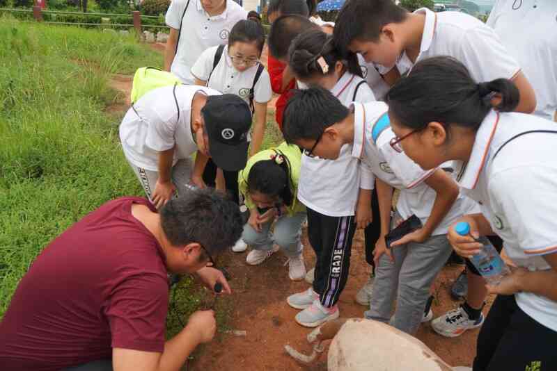 潛山產(chǎn)出眾多早中古新世脊椎動物化石。它為研究嚙齒類、兔形類動物、鳥類等的演化輻射提供了重要的化石證據(jù)。在黃鋪村徐大屋化石點(diǎn),營員們在地質(zhì)公園工作人員的講解下,觀察了典型的復(fù)原模型,了解了東方曉鼠、安徽模鼠兔的意義,還親自參與尋找化石。韓長沖是大別造山帶中研究超高壓變質(zhì)巖的經(jīng)典露頭之一,國內(nèi)外眾多學(xué)者在這里做了很多研究,取得了許多世界矚目的研究成果。在這里,吳維平教授對大理巖、硬玉石英巖、榴輝巖的類型、結(jié)構(gòu)構(gòu)造、成因機(jī)制以及整個(gè)大別山的地質(zhì)演化歷史進(jìn)行了細(xì)致全面的講解。