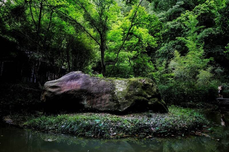 古時(shí),王安石在這里坐石而忘了憂愁,黃庭堅(jiān)甚至將此視為安身立命之所。蘇軾、朱熹、李公麟等名家或愜意夜游,或吟詩(shī)歌賦,留下了400余方縱肆的書(shū)法石刻。面對(duì)先賢的摩崖石刻,往來(lái)喧囂之心會(huì)變得安靜和謙卑。這里環(huán)境幽靜、植被茂密、溪水潺潺,是天然的“氧吧”,更是避暑消夏的好“涼”方。
