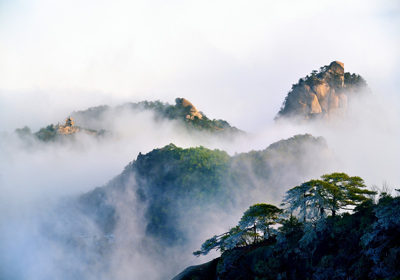 夏天的日出、晚霞最為驚艷,群峰與煙云都披上美麗的霞光,濃烈的色彩,將天地間染成了巨大的水彩畫。