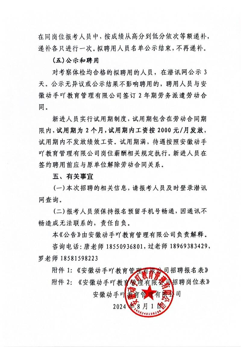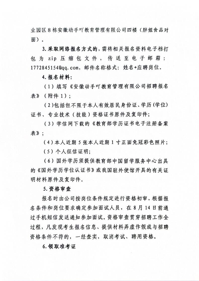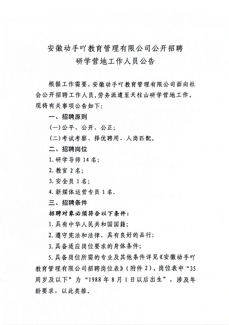 安徽動手吖教育管理有限公司公開招聘研學(xué)營地工作人員公告