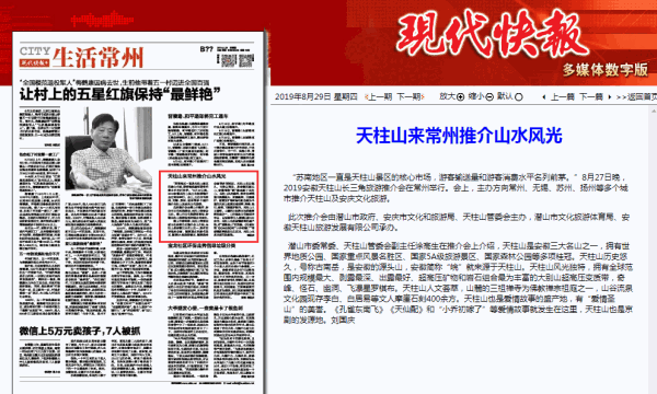現(xiàn)代快報:天柱山來常州推介山水風光