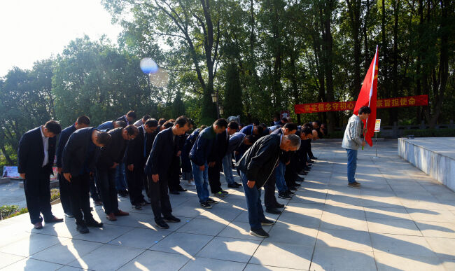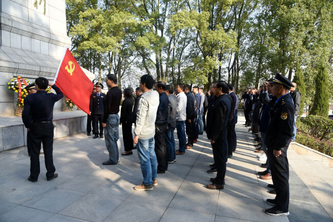 上午9時,全體人員整齊列隊,緩步走進革命烈士陵園,向革命烈士紀(jì)念碑敬獻花籃,在莊嚴(yán)肅穆的紀(jì)念碑前肅立默哀,并向烈士紀(jì)念碑三鞠躬。全體黨員面向鮮紅的黨旗,莊嚴(yán)地舉起右手進行入黨宣誓,表達了不忘初心、牢記使命的政治信念,表達了為黨的事業(yè)奮斗終身的決心和愿望。